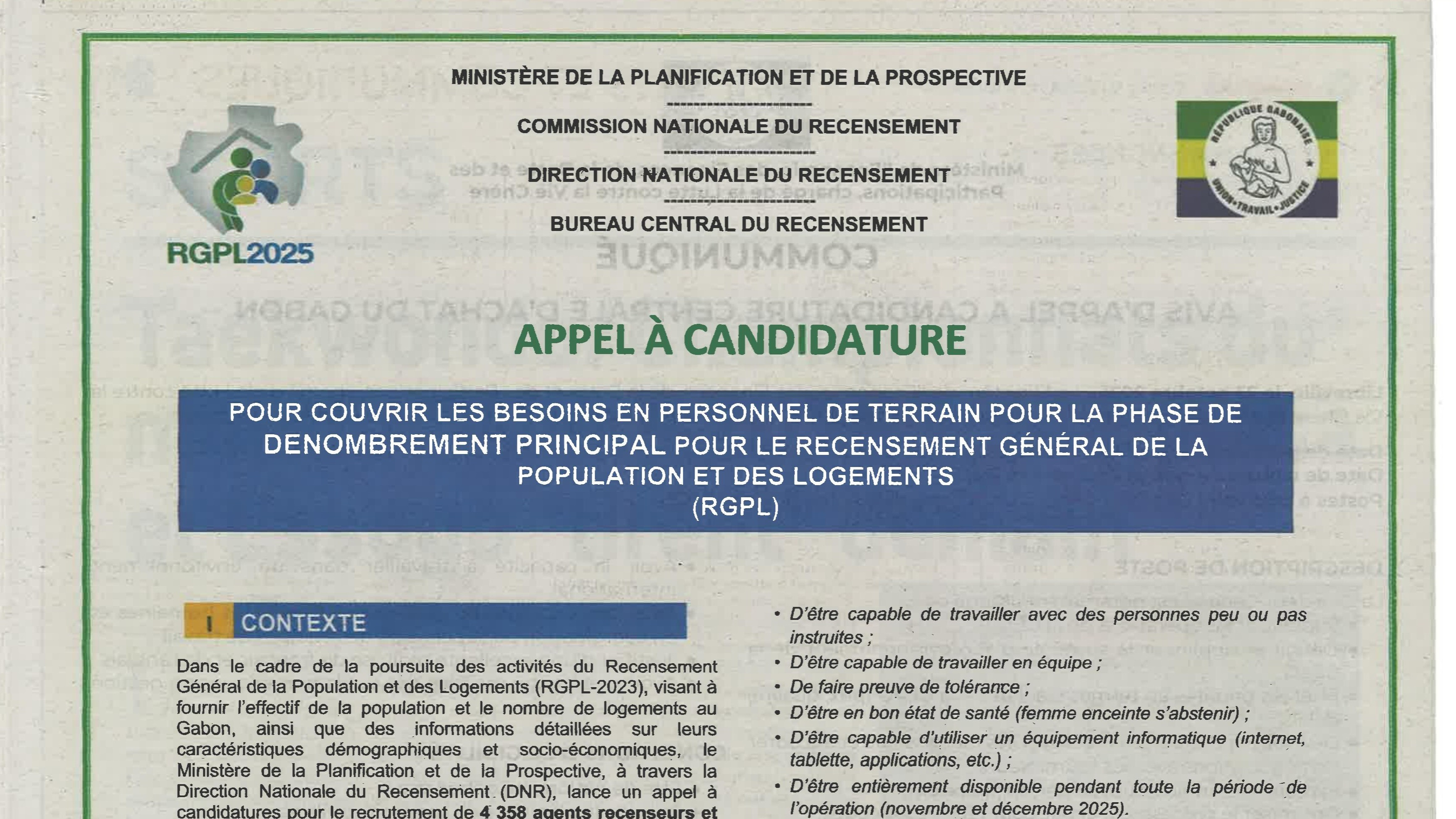 AVIS AUX CANDIDATS AGENTS RECENSEURS ET CONTRÔLEURS