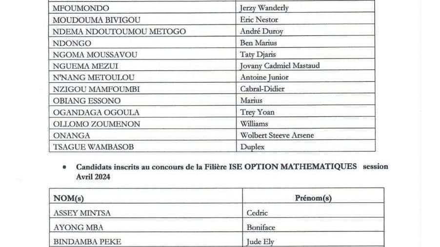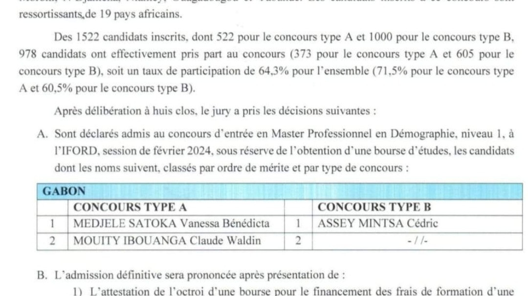 Résultats du concours d'entrée à l'IFORD des 20 et 21 février 2024: pays Gabon…