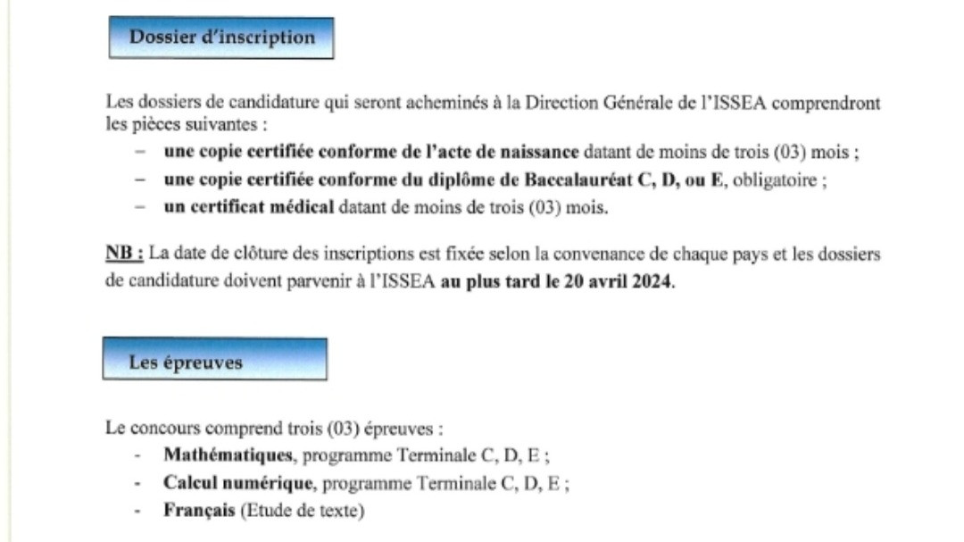 Avis de concours d'entrée à l'Institut Sous-régionale de la Statistique et d'Economie Appliquée (ISSEA) pour la filière de Techniciens Supérieurs de la Statistique promotion 2024-2026.…