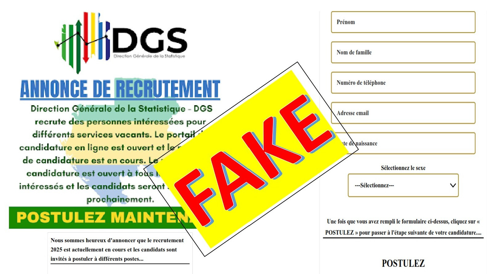 NOTE DE DEMENTI - FAUSSE CAMPAGNE DE RECRUTEMENT AU SEIN DE LA DGS…